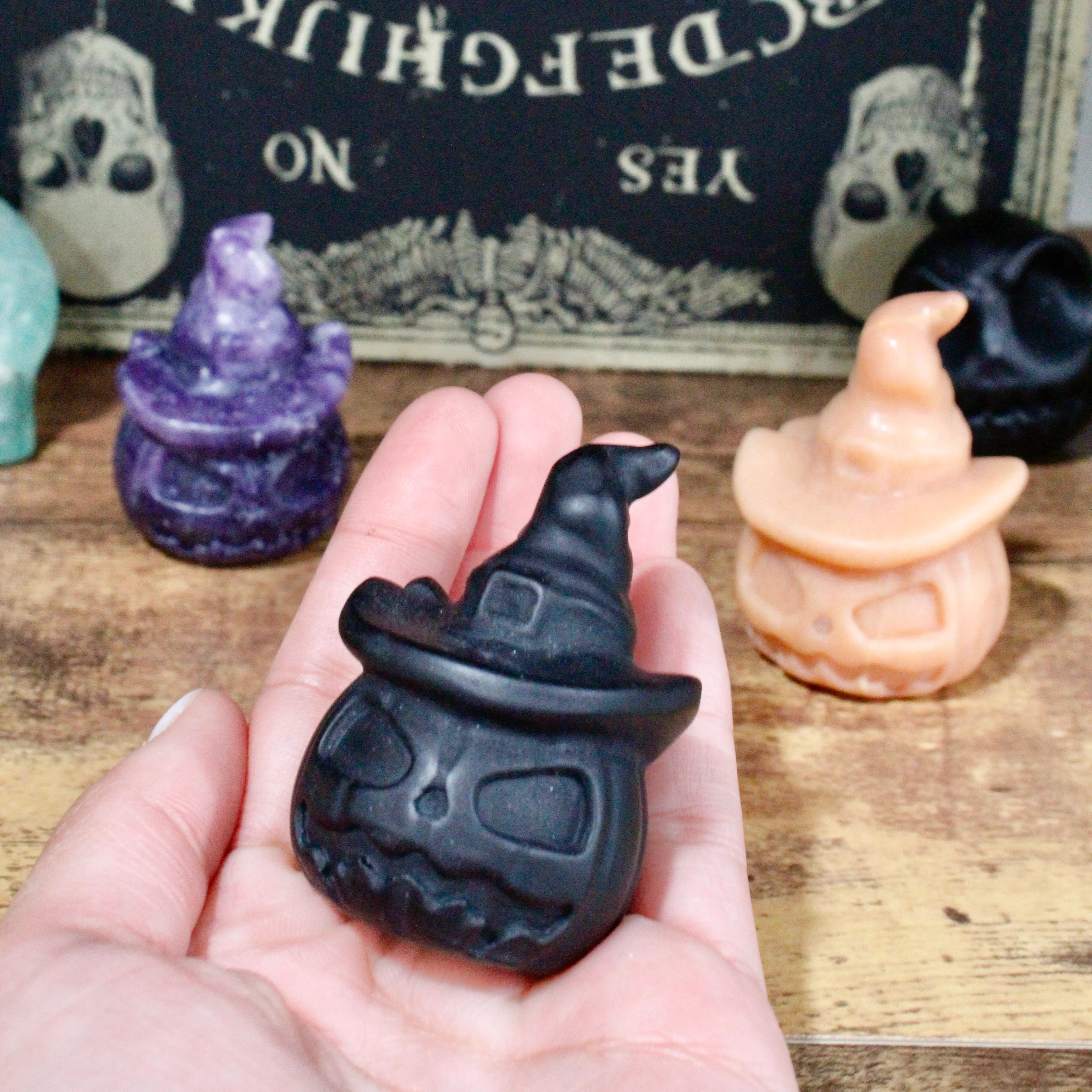 Crystal Jack-o-Lantern with Witch Hat