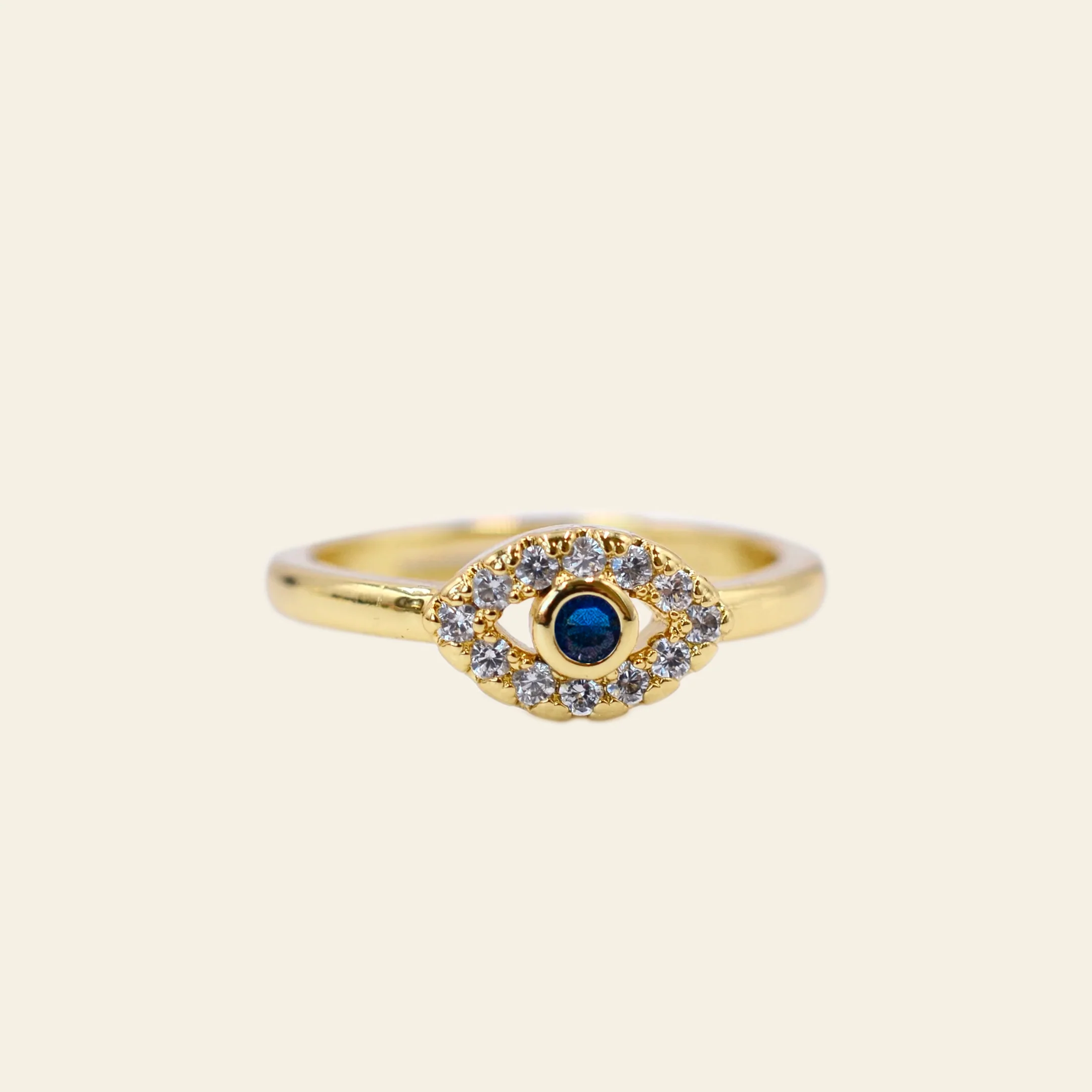 Dainty Crystal Evil Eye Ring - Gold